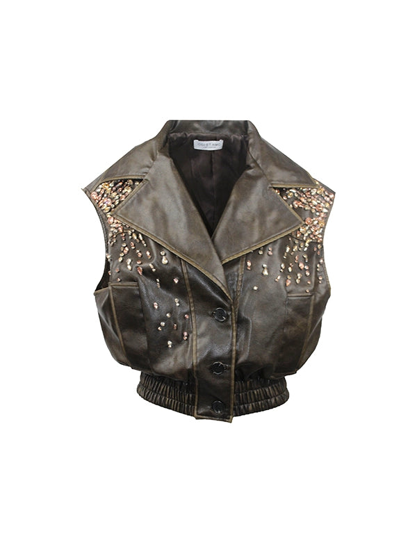 - Con detalle de pedrería cosido a mano por toda la mitad superior en el delantero.