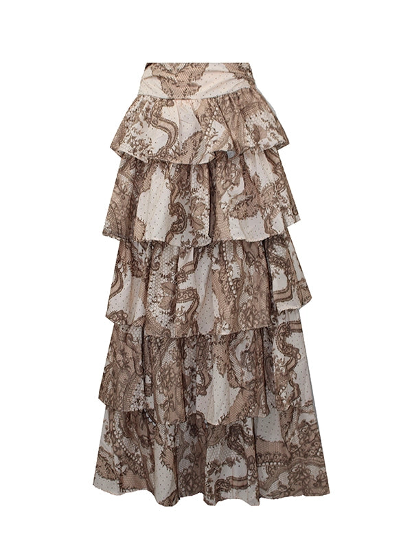 - Falda larga con distintas capas de volantes y de diferentes larguras.