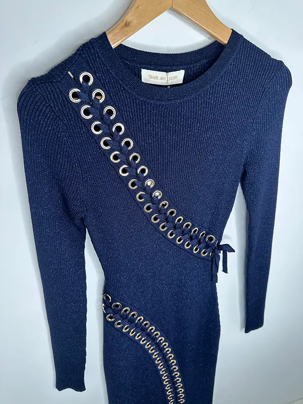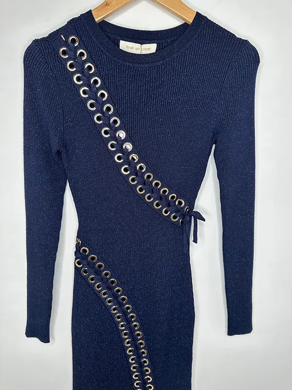 - Vestido de punto midi en un azul noche que no puede ser más divino.