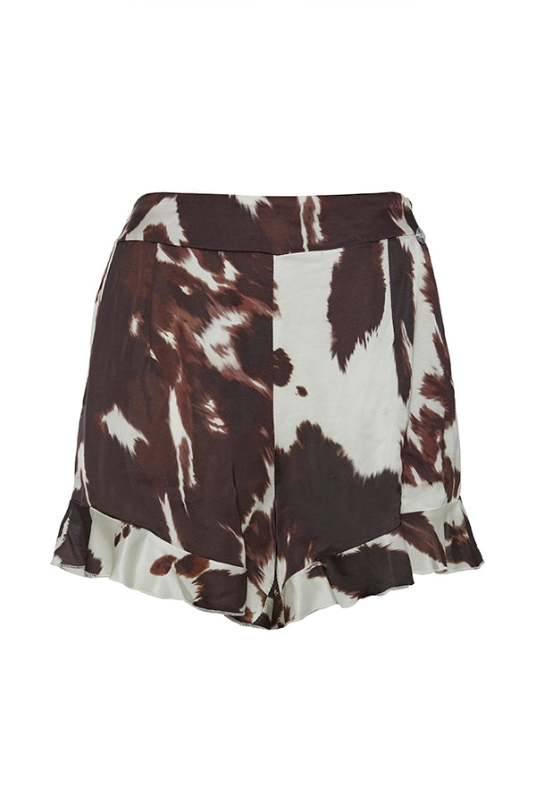 - Pantalón corto ideal en un estampado tipo animal print con manchas en beige y marrón.
