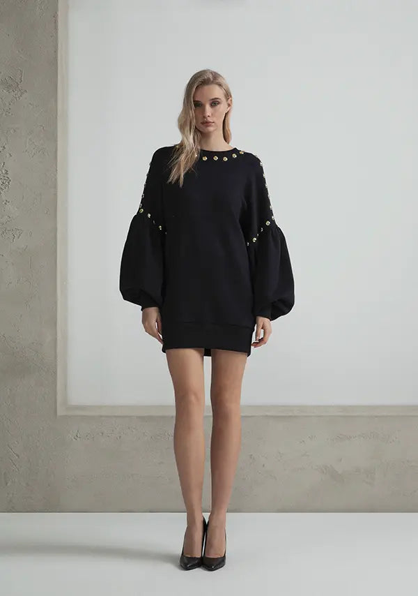 - Vestido/sudadera negro en una felpa de algodón maravillosa.