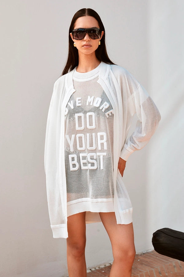 - Bordado en la espalda con el texto "LOVE MORE - DO YOUR BEST"