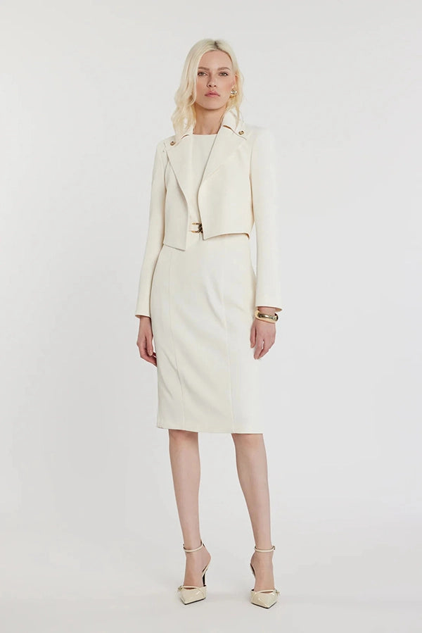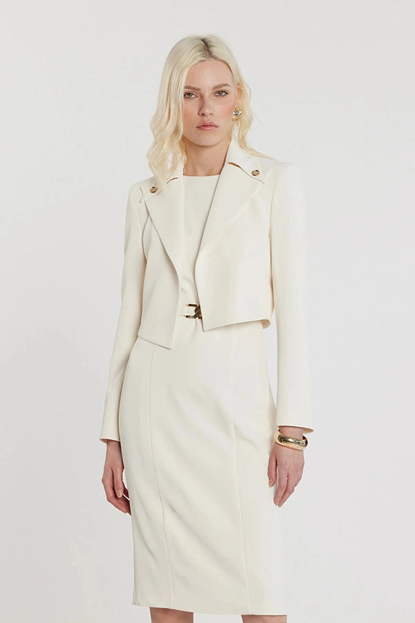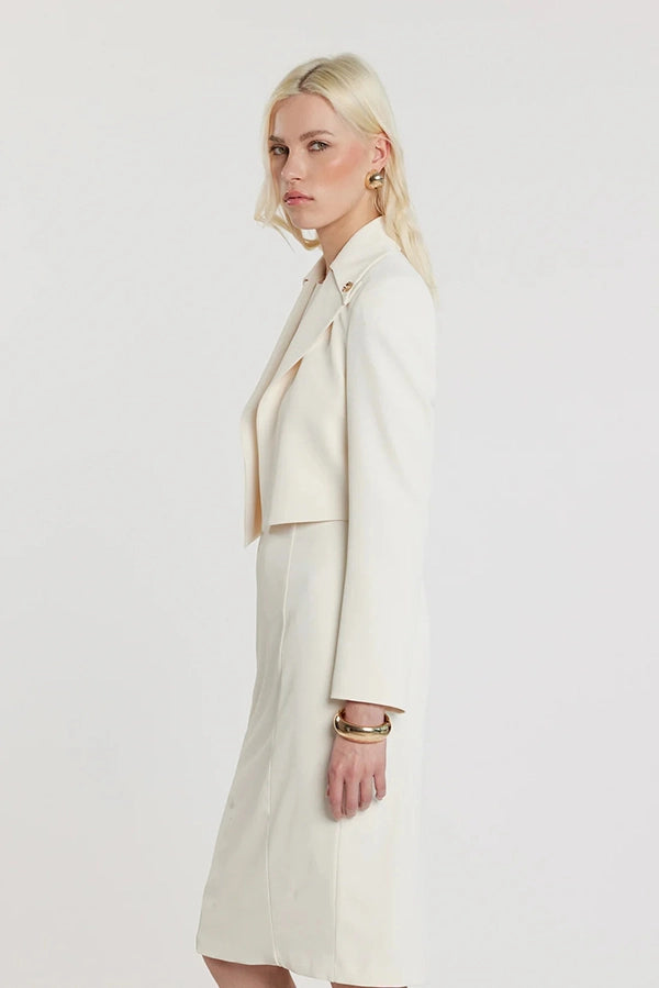 - Blazer crop en color crudo en un tejido tipo crepé.