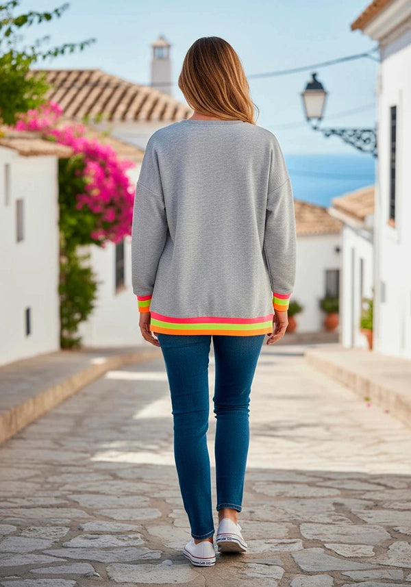 - Puños universitarios neón y bajo trasero más largo.