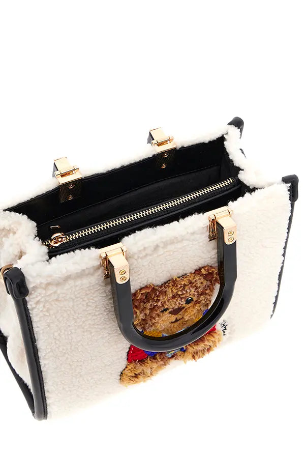 - Bolso mini Tote en ecopiel sintético en borreguito y con el icónico osito Marvin.