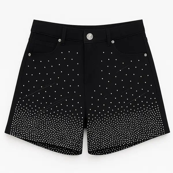 - Detalle por todo el delantero de los pantalones de brillantitos de diferentes tamaños.