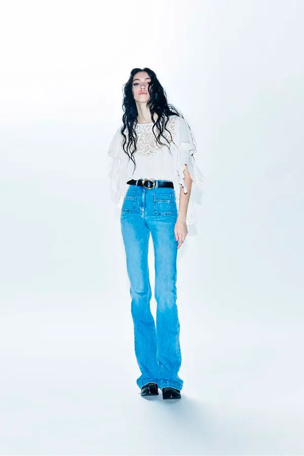 Vaquero acampanado con bolsillos de parche.