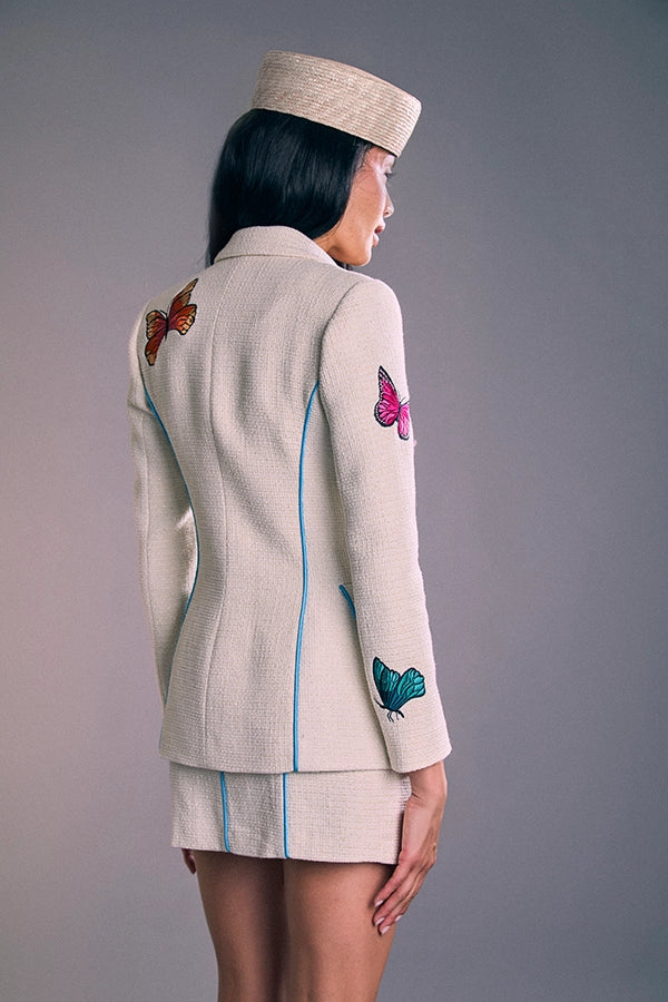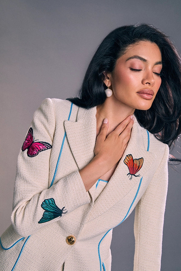 Composición: 86% algodón, 12% poliéster, 2% metálico. Forro: 100% acetato.
