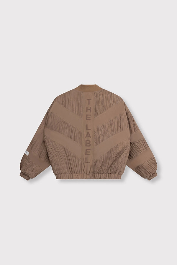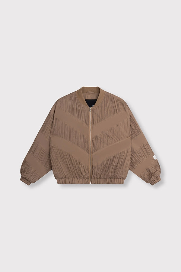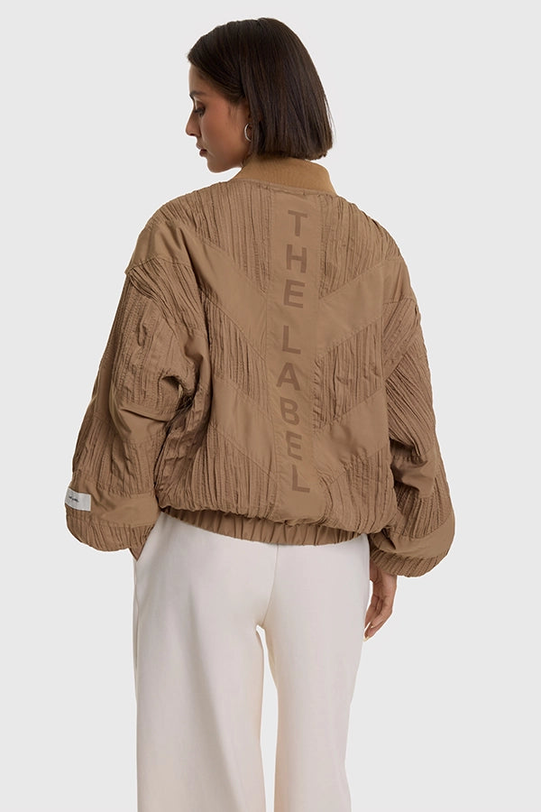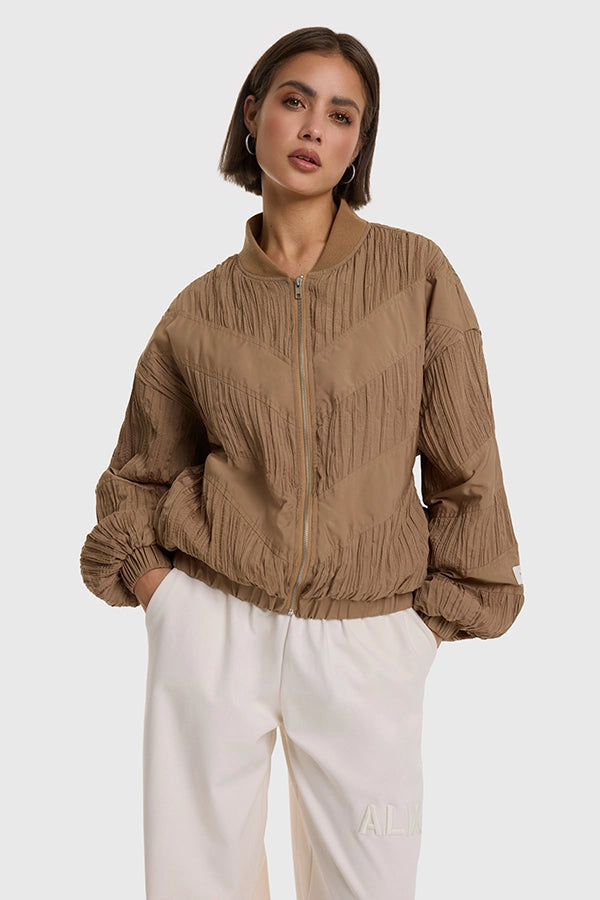 - Chaqueta bomber confeccionada en tejido plisado.