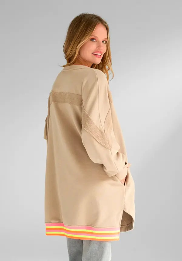 - Con Maxi elástico en puños y en el bajo en la espalda con colores flúor haciendo contraste.