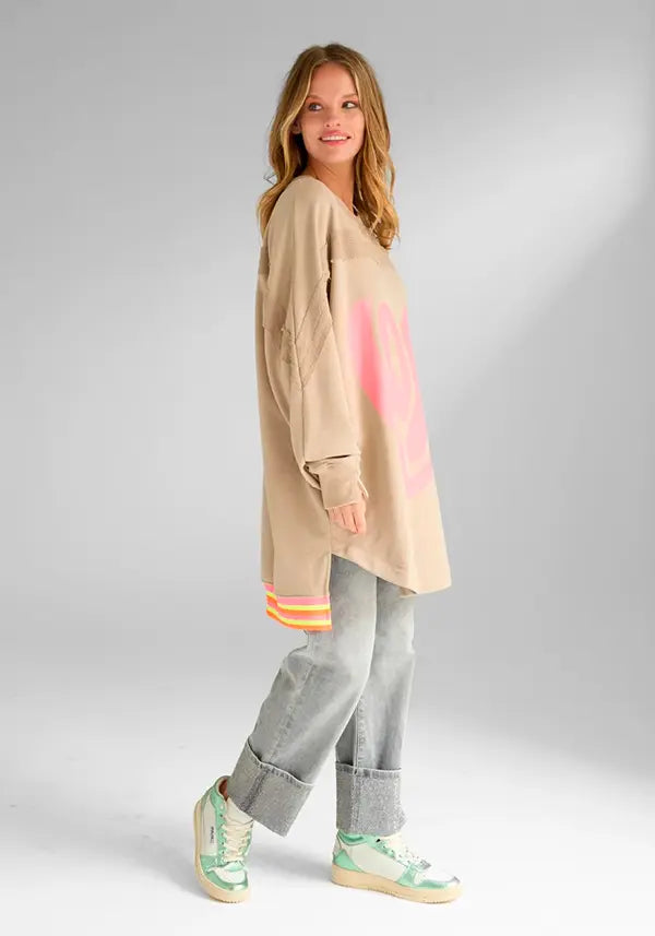 - Con la serigrafia en el delantero con la palabra LOVE con la forma de un corazón haciendo contraste en rosa.