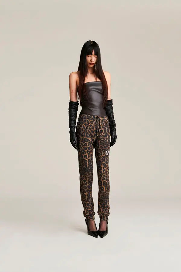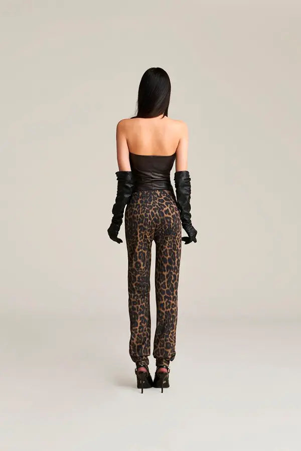 Los pantalones Jogging Maku de algodón combinan el carácter atrevido del animalier con un corte casual pero moderno. El estampado integral aporta un toque de fuerza visual, mientras que los puños con cordón en la cintura y los tobillos garantizan comodidad y una silueta relajada. El detalle del bolsillo delantero añade un elemento práctico y elegante, jugando con las formas y aportando dinamismo a la prenda.