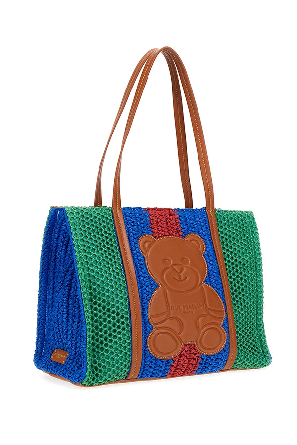 - Bolso shopper suave de crochet bicolor, con un diseño alegre y contemporáneo.