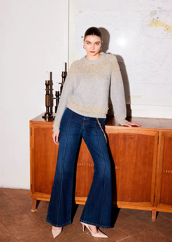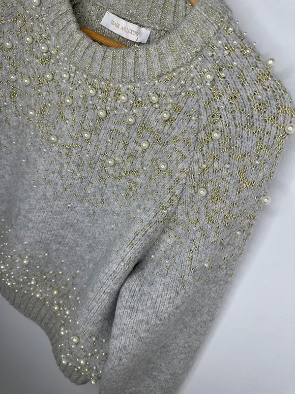 - Perlas en color crudo salteadas por el delantero y parte de los hombros.