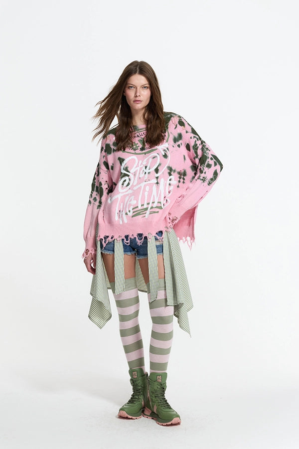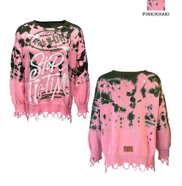 Jersey de punto en combinación de rosa y caqui con efecto tie-dye.