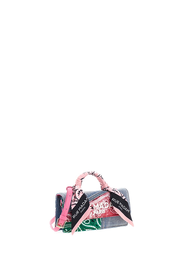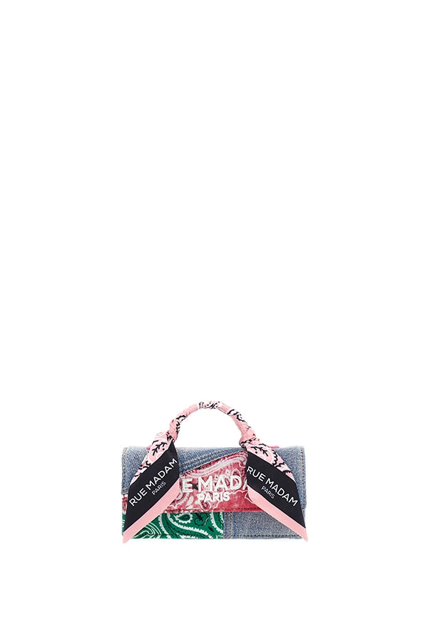 - Bolso bandolera para smartphone en piel sintética con detalles de patchwork vaquero y estampado de bandana.