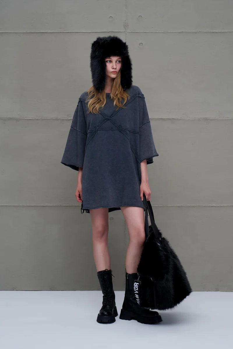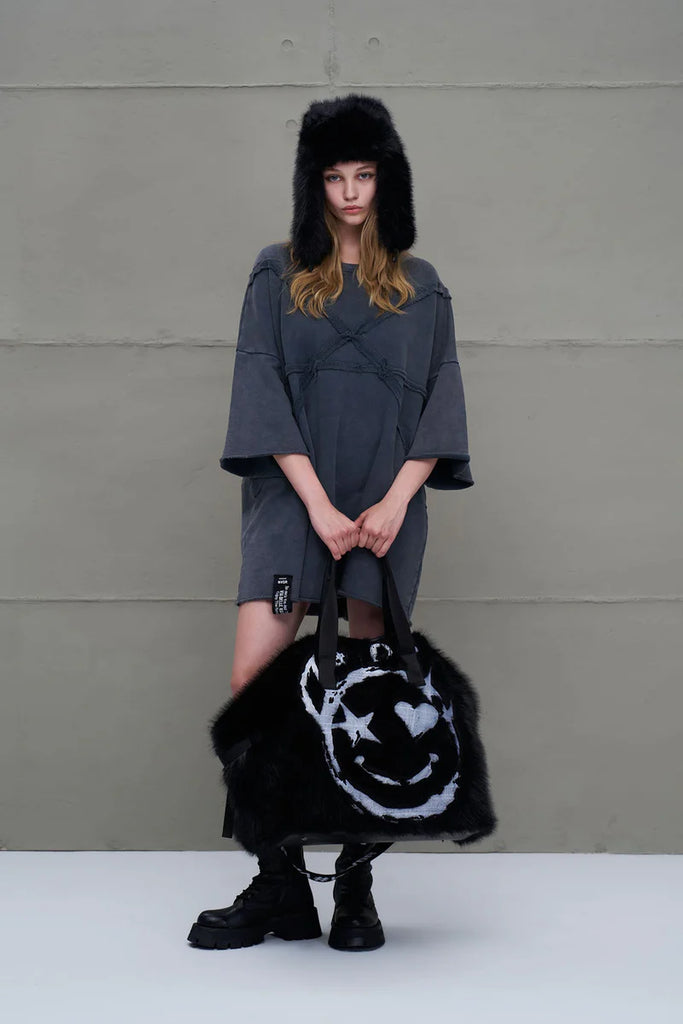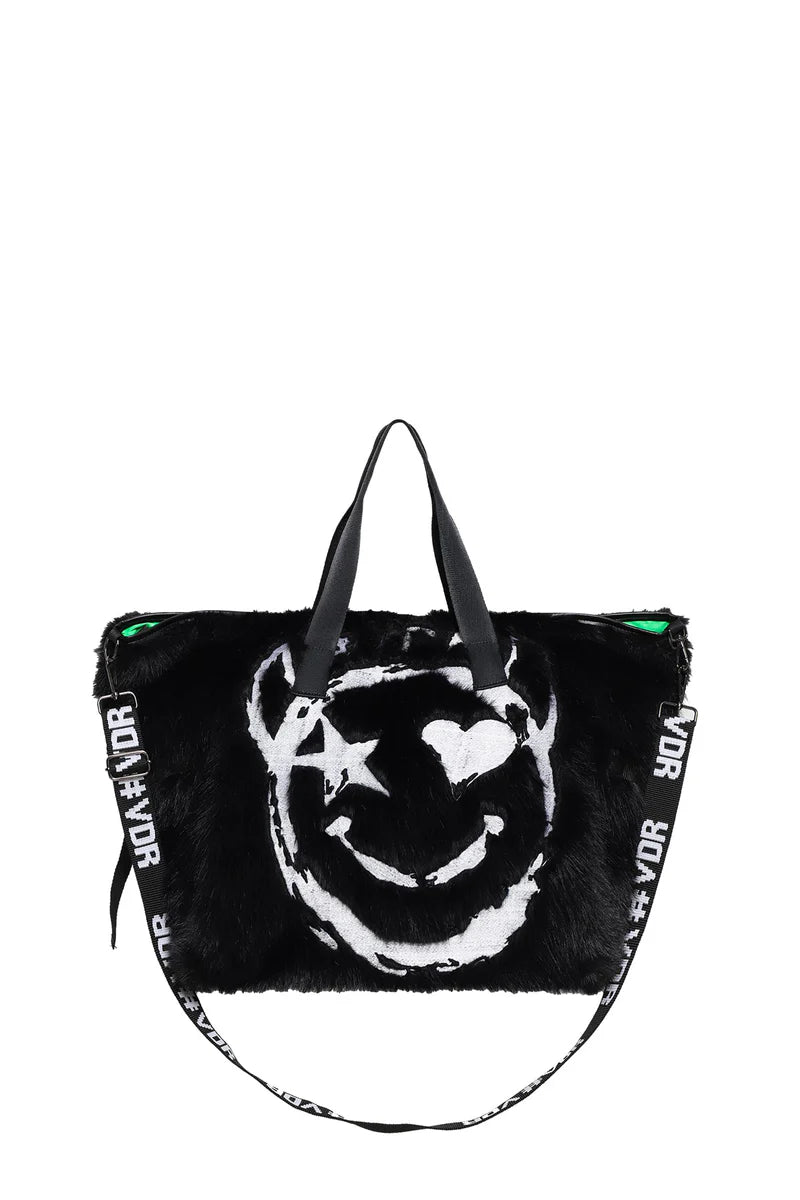 - Bolso maxi en pelo negro.
