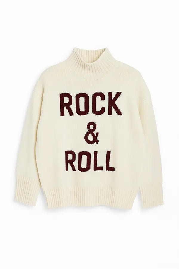 - Con texto en el delantero de la palabra Rock & Roll tejido en color granate haciendo contraste.
