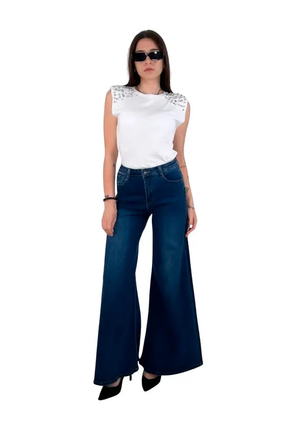 - Camiseta blanca de algodón sin mangas.