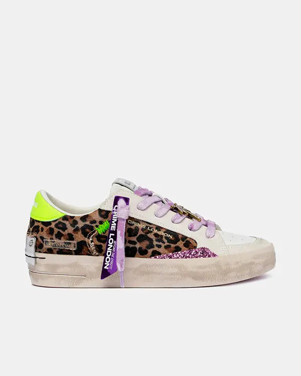 - Parte superior de tela con estampado de leopardo y detalles de purpurina lila.
