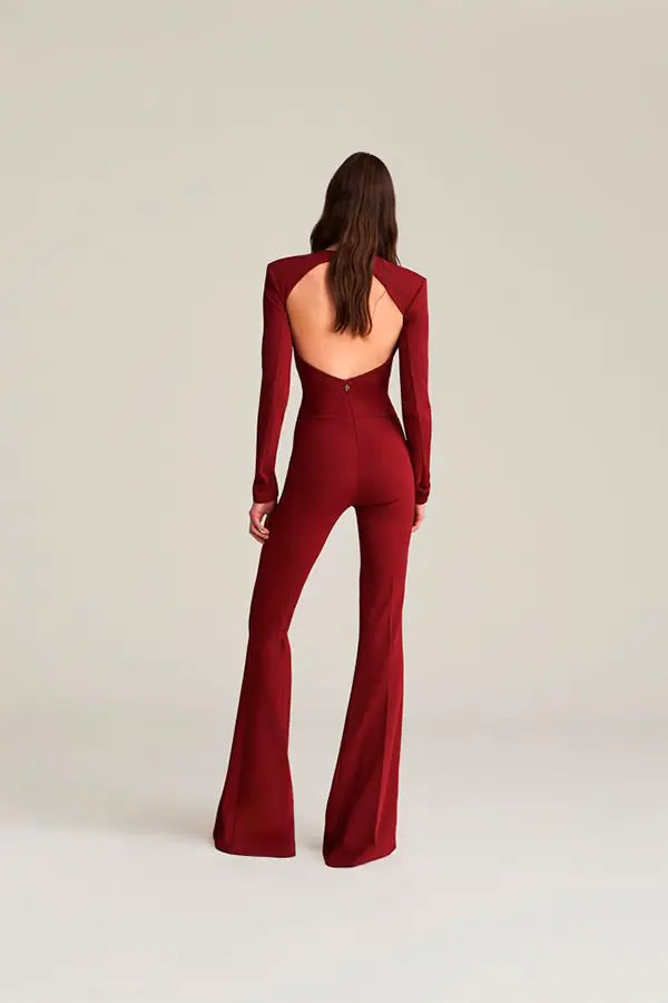 El mono Sienna es una opción versátil para fiestas de cócteles y noches de club, y tiene un diseño escultural con una feminidad llamativa. Define la silueta con un corte elástico y una pernera acampanada, mientras que la abertura en forma de ojo de cerradura en la parte trasera le da el toque perfecto.