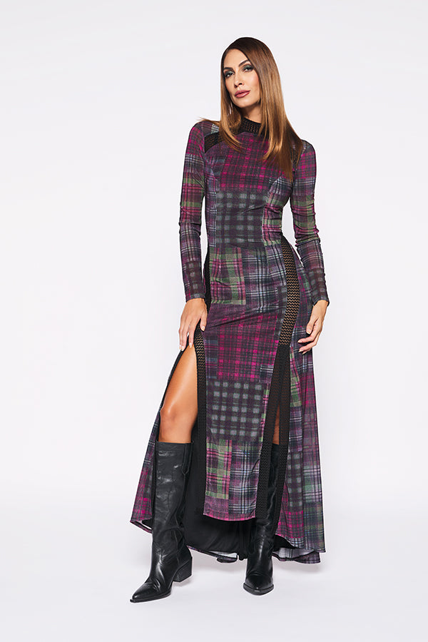 - Detalle de puntilla de crochet como fantasía en los cortes del vestido..