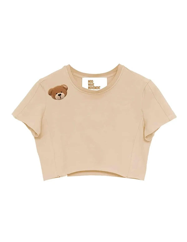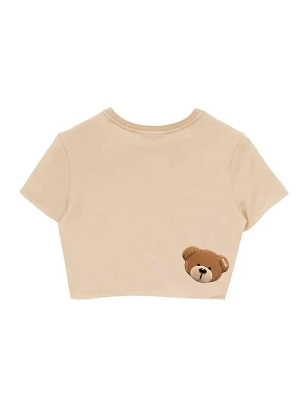 - Camiseta crop BEIGE en algodón de máxima calidad.