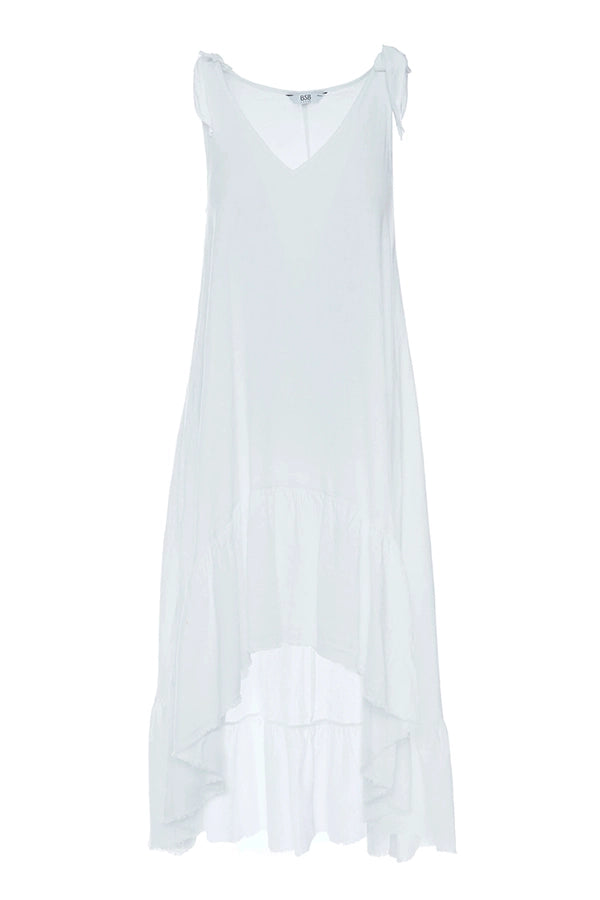 - Vestido de tirantes en blanco, confeccionado en un tejido con mezcla de lino maravilloso.