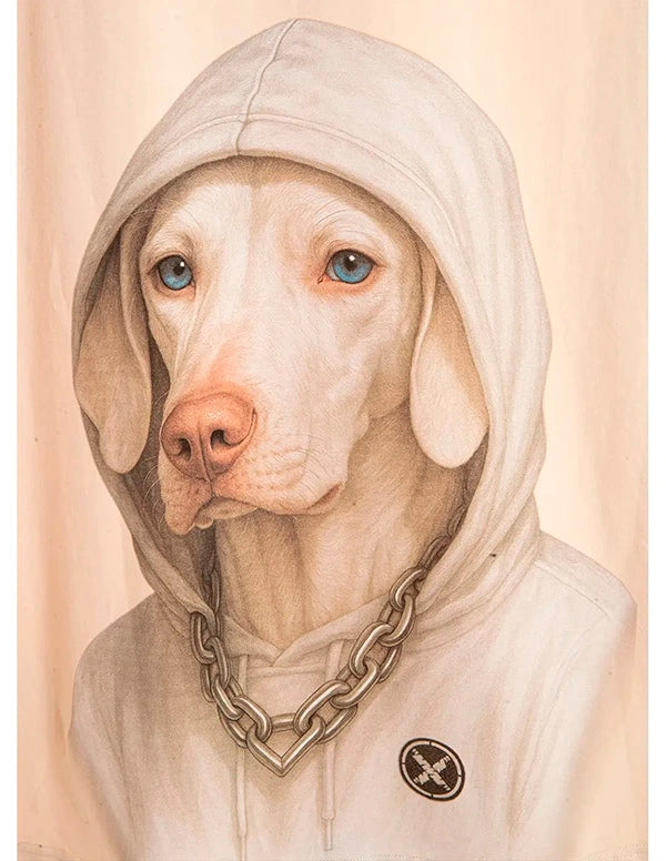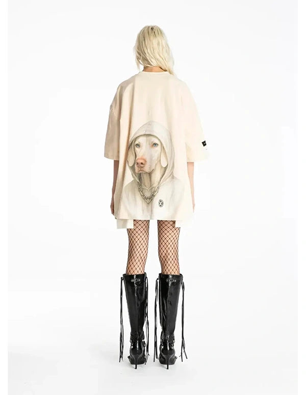 - Serigrafía en la espalda con una Ilustración personalizada con una imagen de un perro.