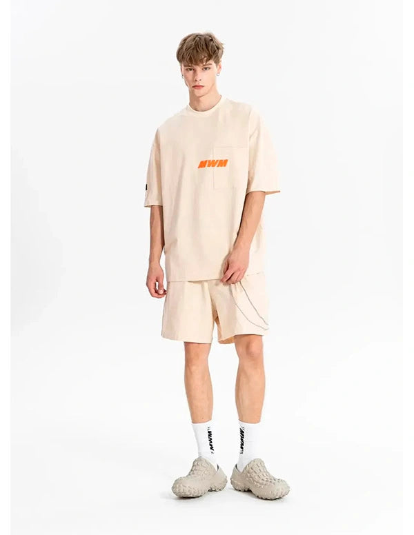 - Maxi bolsillo en el delantero con las iniciales de la marca bordadas en naranja.